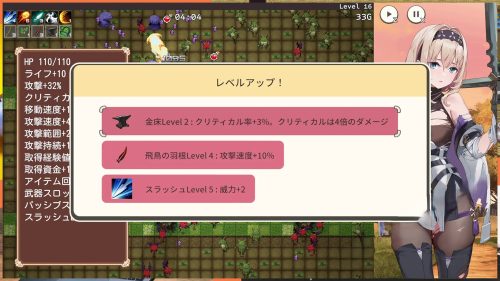 基本上就是自动战斗,不过角色初始的长柄武器(ハルバード)只有近战范围,因此要掌握一下攻击节奏并靠近敌人才能打倒敌人,这使得前期的难度较为严峻。